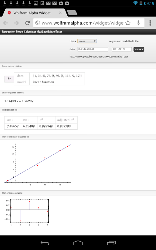 Enter a data set and select a model (linear, quadratic, cubic, exponential, logarithmic or trigonometric and this calculates the answer . It does just what it says on the tin. So if you have work that you need to do, then look no further.