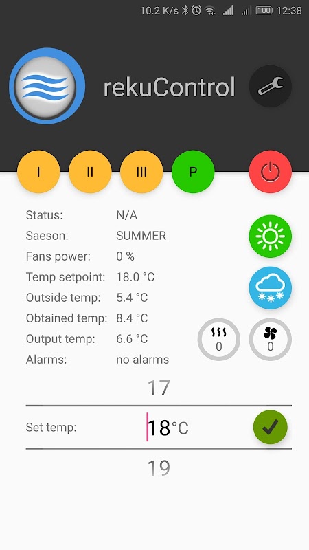- podawane w czasie rzeczywistym temperatury: zewnętrzna, wyjściowa, uzyskana