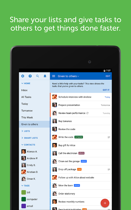 • 分享您的清單並將任務分配給其他人以更快地完成工作