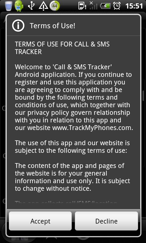 By installing this app you approve that your Call/SMS/Location info can be sent to our server (www.TrackMyPhones.com/cst/) which is located in US and that you will not misuse this application to cause harm to any other Android users.
