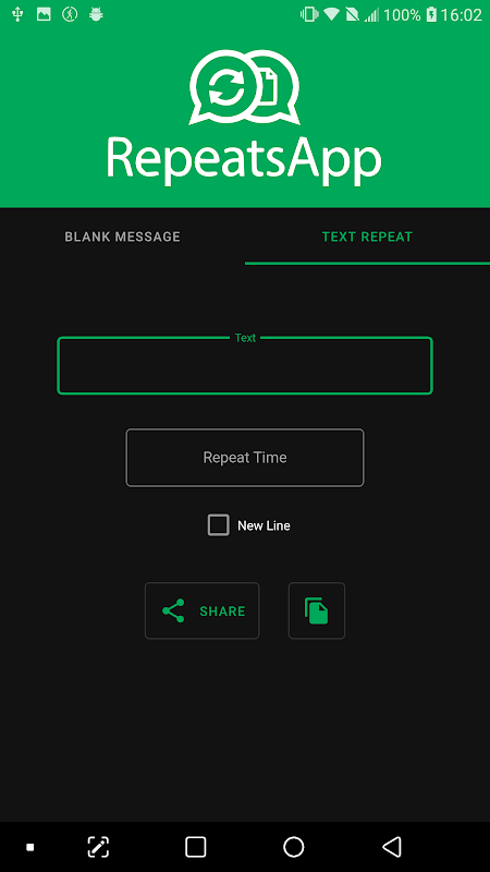 這個應用程序可以發送重複或空的Whatsapp消息。另外,您可以復制生成的消息並將其粘貼到任何地方。