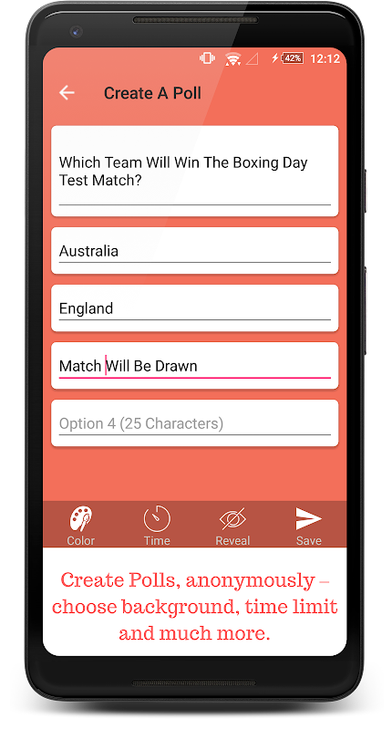 - Create polls, anonymously – choose background, time limit and much more