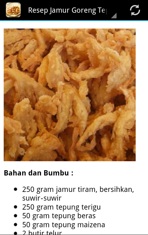 Anda suka memasak? Kami persembahkan aplikasi Resep Makanan Ringan Populer yang merupakan aplikasi yang berisi berbagai macam resep makanan ringan indonesia seperti crepes isi pisang, donat kentang, kacang telur pedas, kue nastar, kue semprong, wingko babat, kue semprit, dan lain-lain.