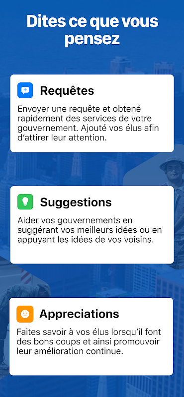 - 請求是從您的政府獲得服務的最快方式。通過標記您當選的官員,您一定會得到應有的關注。
