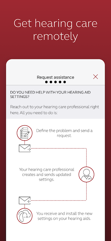 • 在任何地方享受最佳化的 ReSound Assist:要求聽覺照護專家提供助聽器設定的協助,並取得新的設定和軟體更新。