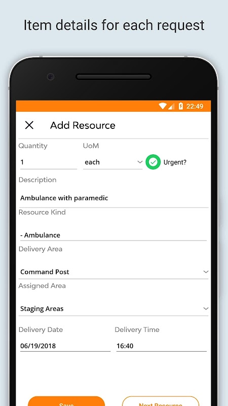 資源請求移動應用程序是最新加入到TRG的成套移動軟件服務。資源請求是簡單易用,讓現場響應者輕鬆創建對直接提交到事件行動計劃軟件許可和訂購他們的移動設備上的資源請求的能力。現場響應者能夠跟踪他們的要求和請求在訂購過程進行接收警報。