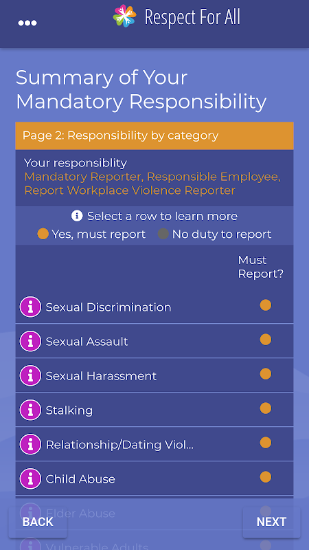 This app is designed for OHSU students, faculty, and staff in conjunction with the Respect for All training. Sexual misconduct can occur in many forms, including dating violence, stalking, harassment, or assault. This app will help define these and provide resources. In addition, it will help you understand your rights, options, and resources, as well as identify the responsibilities of OHSU students, faculty, and staff.