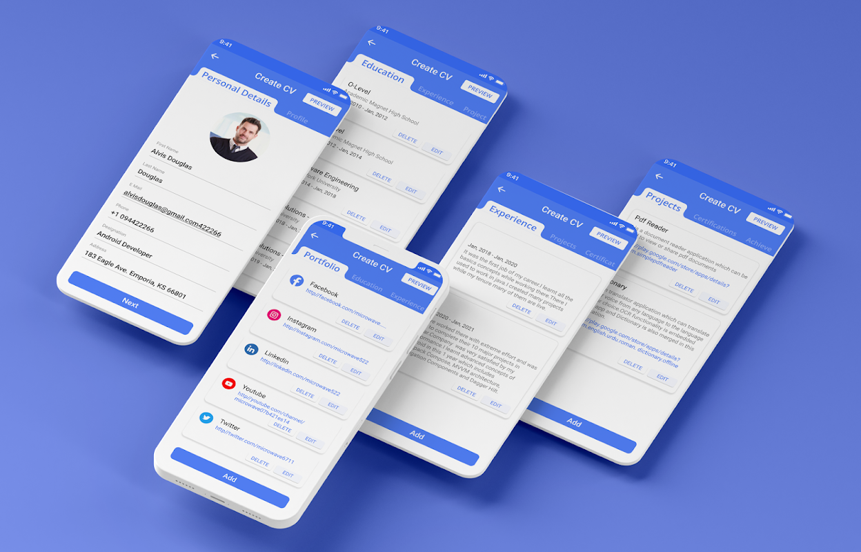 專業的簡歷製作應用程序可確保用戶在幾分鐘內掌握簡歷。創建簡歷應用程序具有易於使用的用戶界面,有助於創建簡歷。簡歷生成器應用程序在每個部分都提到了需要哪種類型的信息,因此它是創建簡歷的必備工具。
