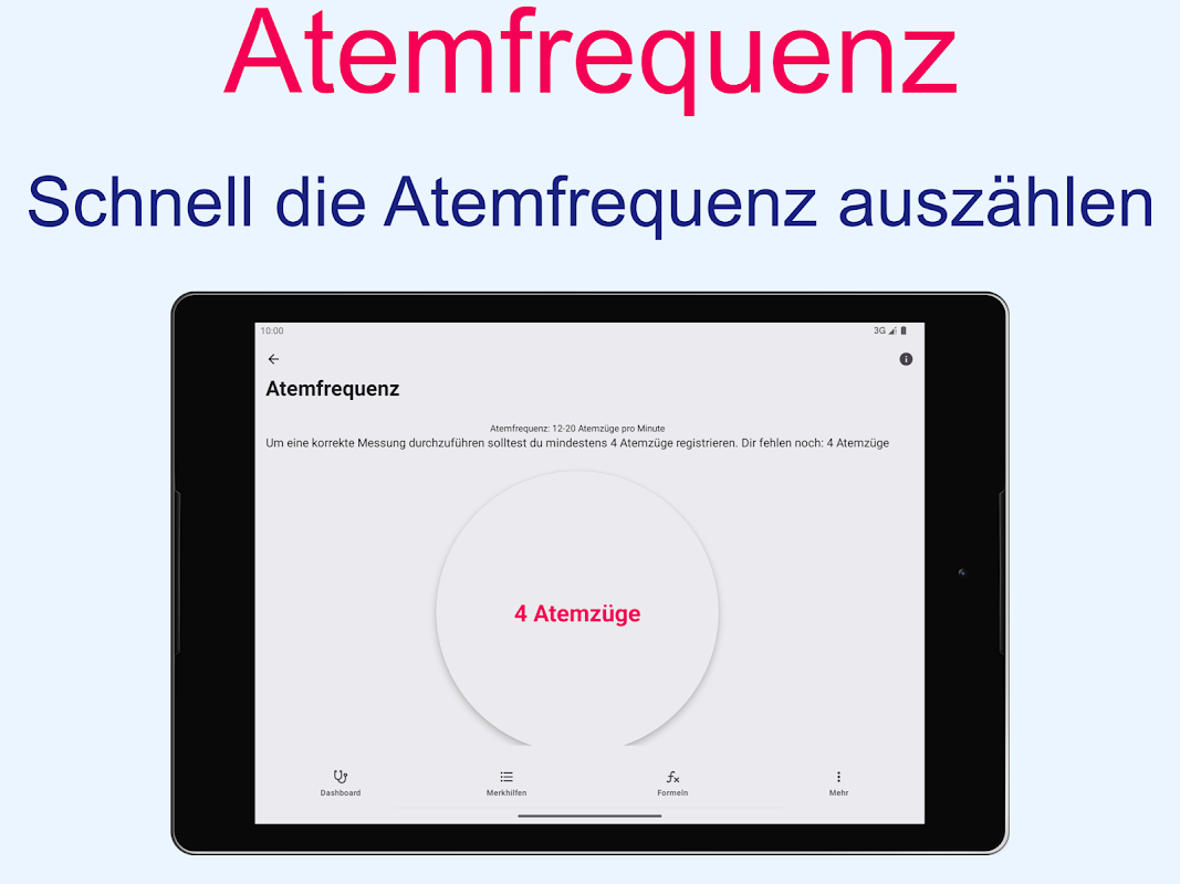 為每個年齡的患者提供了收集生命參數的標準值和工具。只需輕按螢幕或 Wear OS 應用程序,您就可以快速輕鬆地測量您的呼吸或脈搏率。可以同樣快速有效地為患者收集格拉斯哥昏迷量表。可以快速、輕鬆地收集新生兒的 APGAR 評分,以便可靠地記錄下來。還整合了九分法則或巴克斯特-帕克蘭公式等燃燒公式,因此即使在有壓力的情況下也可以快速、正確地計算。