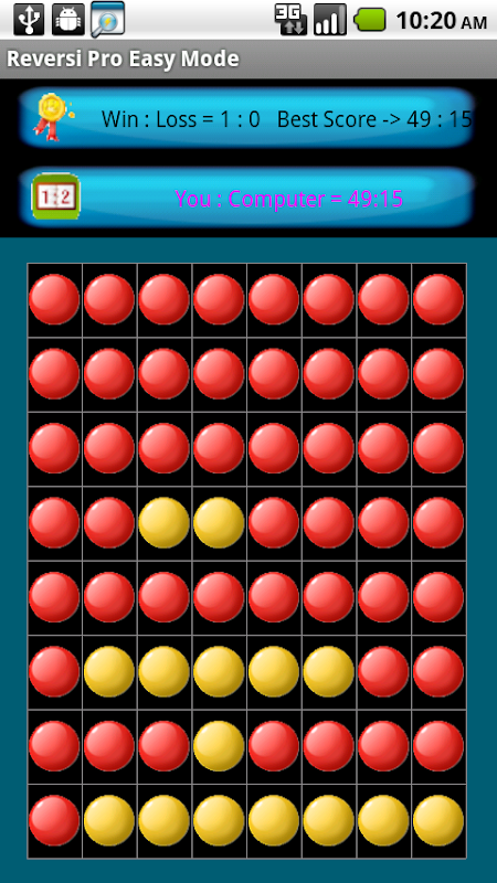 ReverseMe (also called Reversi) is a famous abstract strategy board game played by two players on a 8 rows and 8 columns board and a set of distinct pieces for each player. The player's goal is to have a majority of their colored pieces showing at the end of the game.