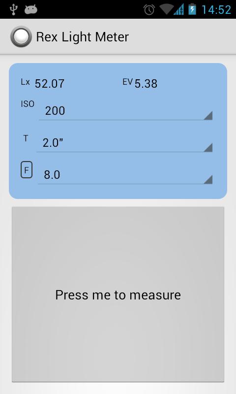 Rex Light Meter is a very easy to use, very touch friendly incident-light meter application