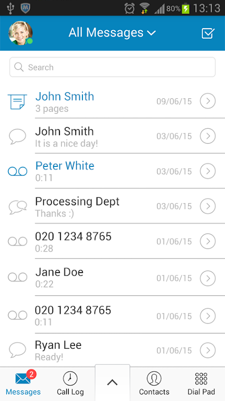 - Send individual and group messages to company contacts with RingCentral Messaging ***