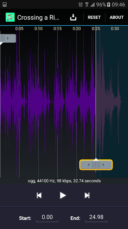 - while playing, tap the word Start or End to quickly set the start and end markers to the current playback time.