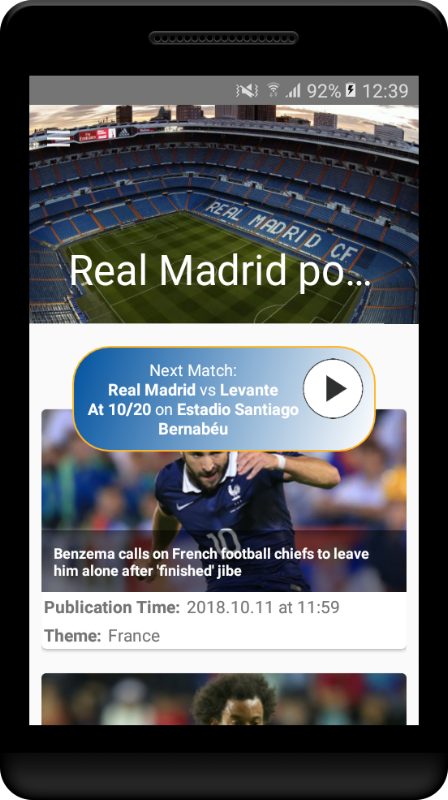 • Newsfeed with the most up-to-date Real Madrid team news adn related team news.