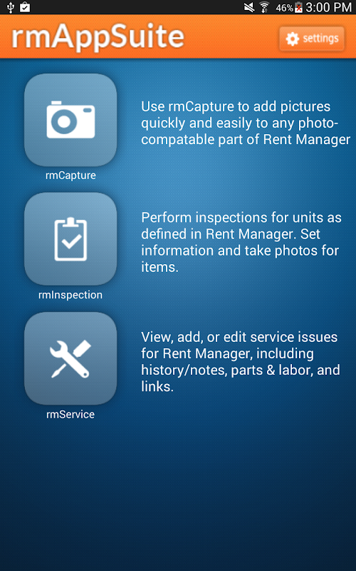 rmInspection enables property managers to conduct comprehensive rental unit inspections on an Android device, and deliver them directly to Rent Manager Online (RMO) in real time: