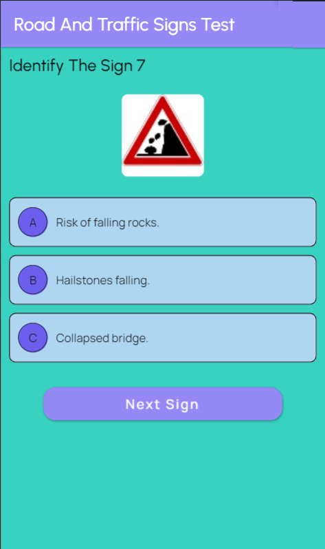 道路交通標誌的測試是免費的應用程序準備駕照考試的,你也可以學習的道路和交通標誌,因為這是所有驅動程序非常重要。該應用程序包含所有主要道路和交通標誌。每個星座都有三個選項中哪一個是正確的。在情況下,如果您選擇不正確的答案,對話框將打開並顯示正確答案。在測試結束時你的分數將被宣布,這樣就可以判斷你對道路和交通標誌知識。