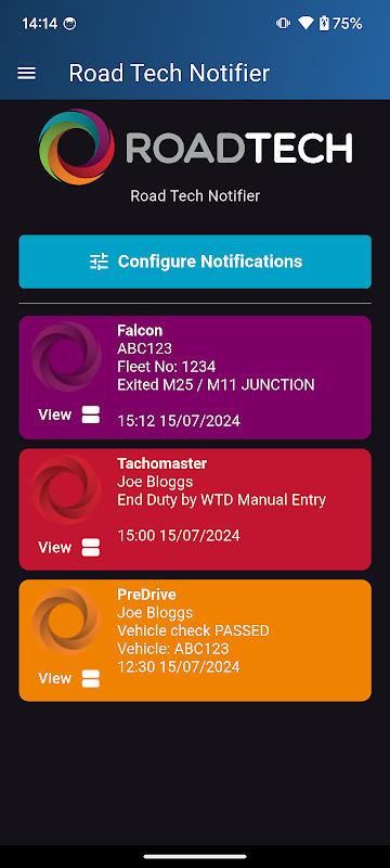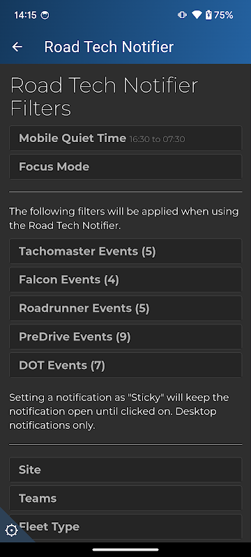 此Road Tech配套應用程序允許Road Tech產品和服務的用戶接收各種通知。