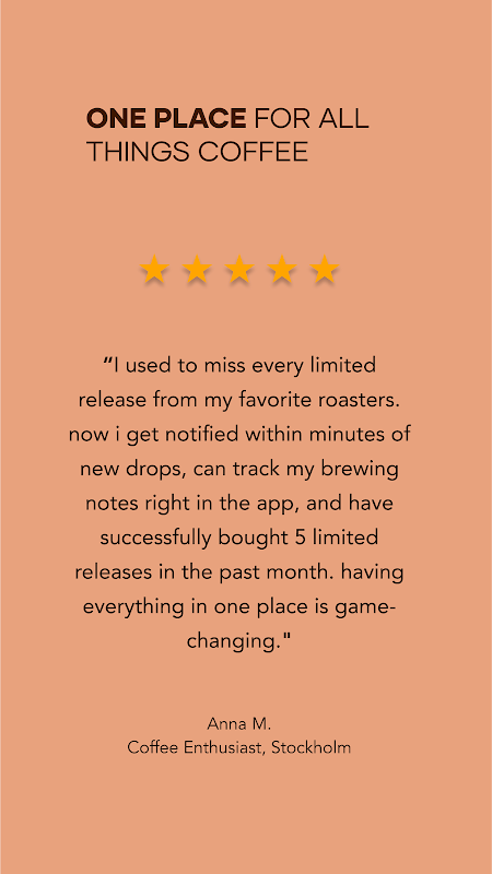 我們即時更新的資料庫和智慧推薦,確保您絕對不會錯過任何一杯完美的咖啡。從尋找下一個心儀的烘焙咖啡,到完善您的沖泡技巧,Roastguide 幫助您書寫獨一無二的咖啡故事,讓好咖啡找到您。
