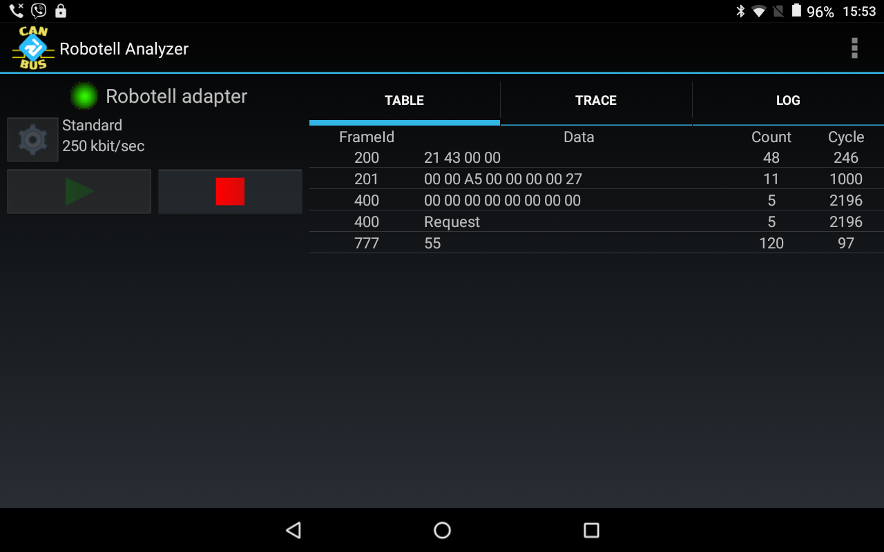 該應用程序允許您使用移動設備通過Robotell USB-CAN適配器監視CAN總線上的數據活動。