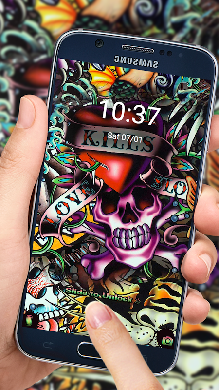 時尚搖滾嘻哈骷髏死神塗鴉主題設計有酷炫彩色邪惡骷髏搖滾歌手鎖屏高清壁紙和高清嘻哈塗鴉死神搖滾壁紙,時尚經典潮流性感頭骨手機主題又非常酷炫適合男生手機主題喜歡死神的壯實男生! 。搖滾說唱頭骨嘻哈風格引領時尚潮流讓您的Android手機運行更流暢,更智能,同時為您提供完美的體驗.搖滾死神嘻哈街頭街舞主題是最新的主題。