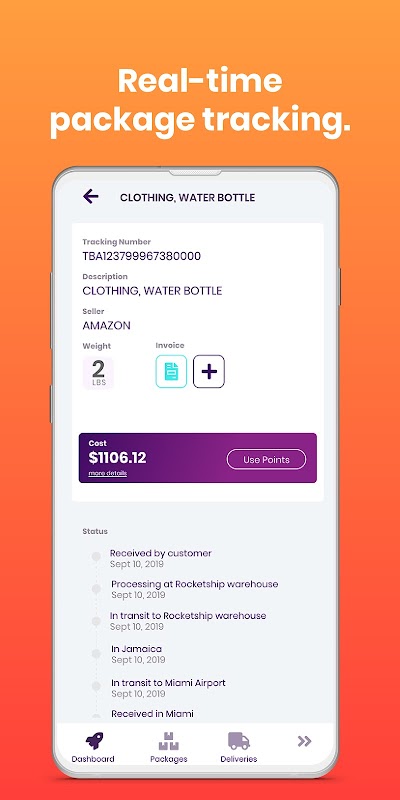 使用Rocketship應用程序可以查看和接收有關包裹的通知,上載和查看發票,安排交貨時間等等。沒有Rocketship帳戶?直接在應用內註冊。