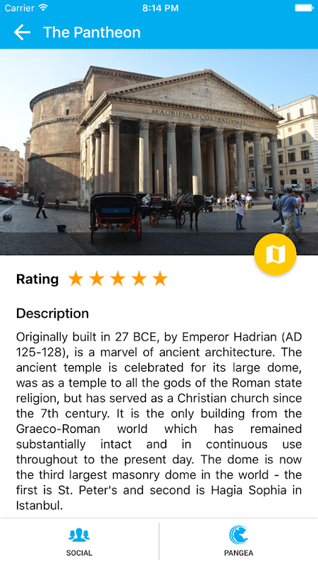 With detailed information of around 20 museums and more than 150 featured attractions along with 1000s of other Points of Interest carefully integrated with every single travel activity, Rome travel is power packed with utilities and information. From Facebook Check-Ins to local event information, offline map to intuitive Augmented Reality experience, we have brought most of the travel activities and application needs to one single app. Save precious travel time rather than switching between several apps and utilities!