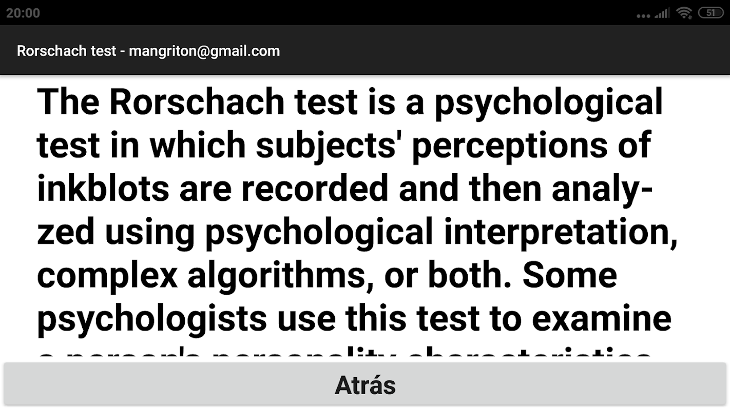 羅夏測試是一種投射性心理測驗,於1921年開發,用於測量思維障礙。它是從精神分裂症患者通常以非常不尋常的方式解釋模糊圖像的觀察中發展而來的。在測試中,參與者被顯示一系列十張墨水印跡卡片,並指示每個人用墨跡圖看起來如何回應。