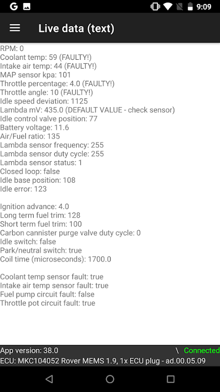 這樣就可以對Rover MEMS ECU v 1.3、1.6、1.9、2J進行診斷和數據記錄