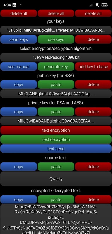 I did not include other algorithms supported by Android in the program, as they are outdated.