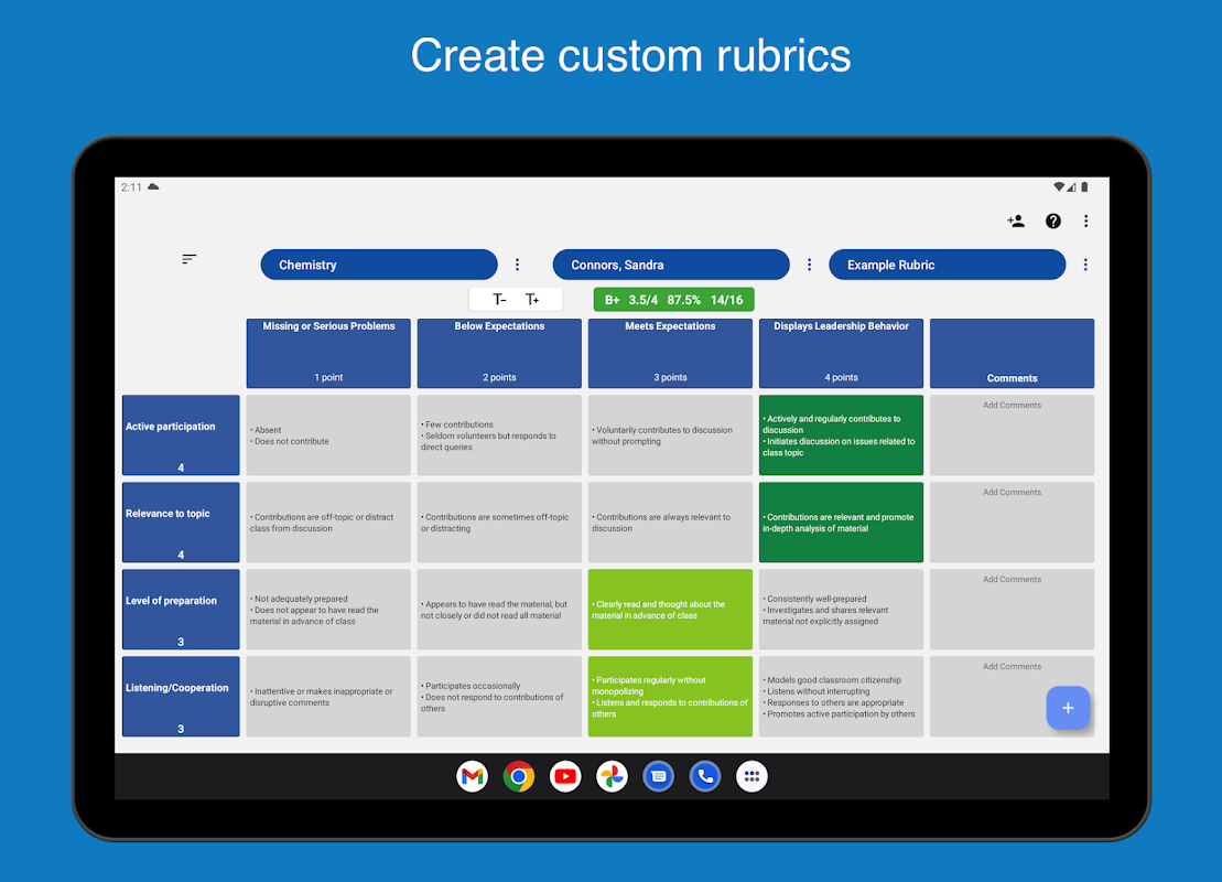 教師可以創建評分標準並輕鬆評分和發表評論。