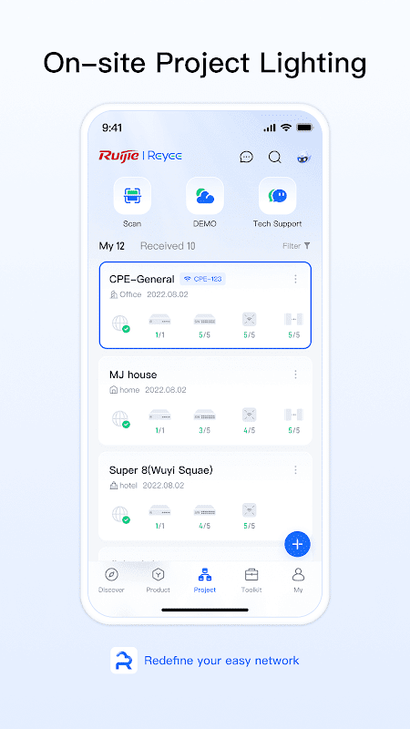 銳捷雲是一款功能強大的工具,通過掃描設備上的二維碼,您只需1分鐘即可快速部署無線網絡。您可以輕鬆添加設備,設置WiFi並監控網絡狀態,拓撲和警報。