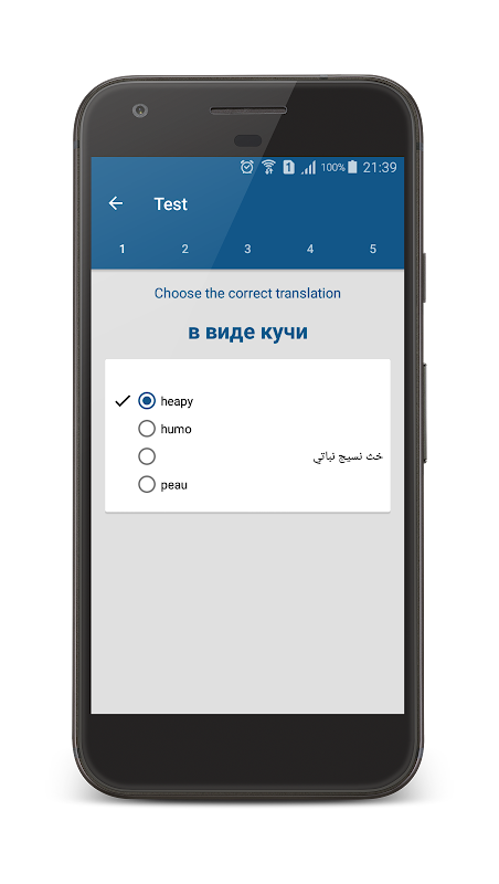 - Test 20 sentences. Random Arabic, Russian words with Reading, listening.