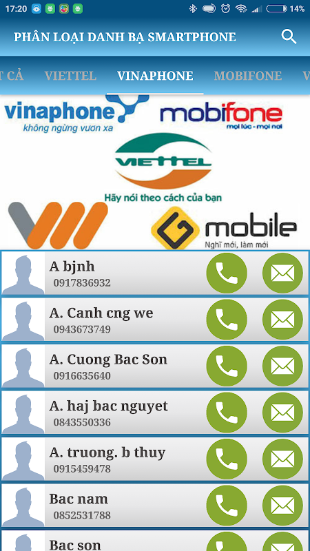 通過電話網絡目錄排序的應用程序是一個應用程序,可以幫助您通過網絡快速分類您的電話簿:Viettel,VinaPhone,MobiFone,Vietnamobile ...