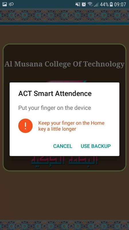 S-Basma allows you to register attendance using your smart device within the College premises, using the College wifi connection, and within a particular range.S-Basma will ask you for your face picture and fingerprint.This will allow you to store your attendance for future reference. You will be asked to login using your College LDAP credentials to sign on to the application.