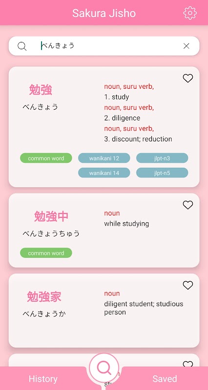 Sakura Jisho是日文-英文字典。您可以搜索日語或英語單詞。