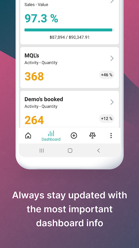 在應用程序的幫助下,您可以快速了解自己的銷售數據,並可以輕鬆地將這些與您公司中其他賣家的數據進行比較。應用程序中隨時顯示的統計數據可根據您的特定需求進行定制,突出顯示對您很重要的數字。該應用程序實時概述了您公司的活動,並使您能夠及時了解公司銷售活動的最新更新。