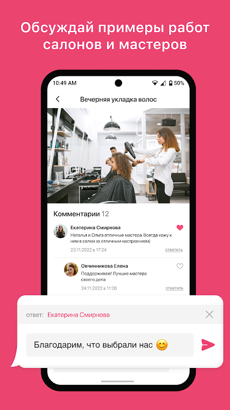- 回饋:在應用程式中您可以留下評論,以及討論大師和沙龍服務的工作範例!