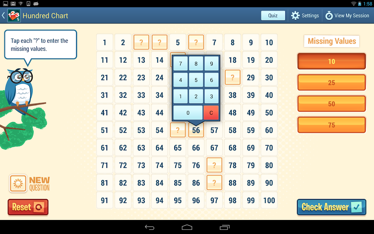 Hundred Chart –Identify missing numbers in a chart containing numbers from 1 to 100.