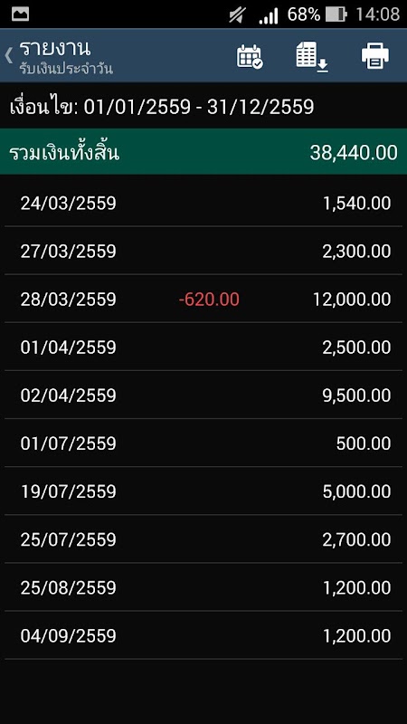 手機/平板電腦的銷售記錄,現金,條碼打印出的收據報告。