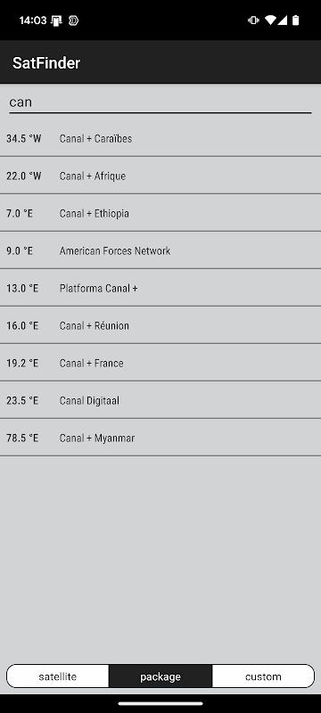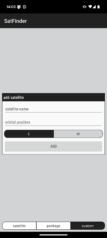 SatFinder(尋星儀)是一個工具,它可以幫助您設置衛星天線。它會給你的方位,從列表中您所在位置海拔LNB傾斜(基於GPS)和衛星選擇。結果顯示兩者作為谷歌地圖的數字數據和圖形。這還內置指南針,這將幫助你找到正確的方位衛星。它也可以使用增強現實表明哪裡是在攝影機視圖衛星。
