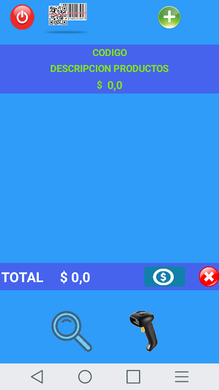 The app is designed to help you charge in your business, warehouse, kiosk, drugstore, supermarket, etc .. With which the customer will spend with the products and the user will scan the products or searching the previously loaded data base and will he will add the purchase and then in the submenu he will be able to put the cash with which he will be paid and he will automatically tell him what he will give again.-