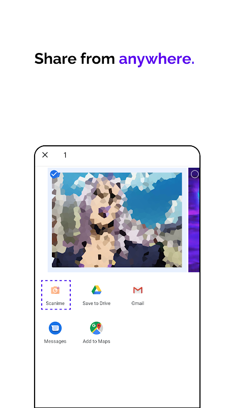 - Share any image from any app to Scanime