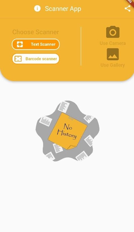 The app has two scanner, text and bar-code scanner, the app Scans text and bar-code from images stored in gallery or using camera.