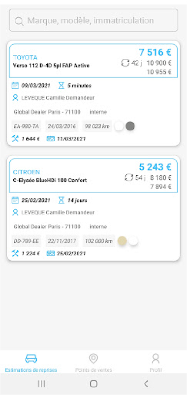 • Fiche détaillée de l'offre comprenant les caractéristiques du véhicule, les Indicatorurs clés(estimation de reprerise、prix de revente、rotation moyenne 等)等信息