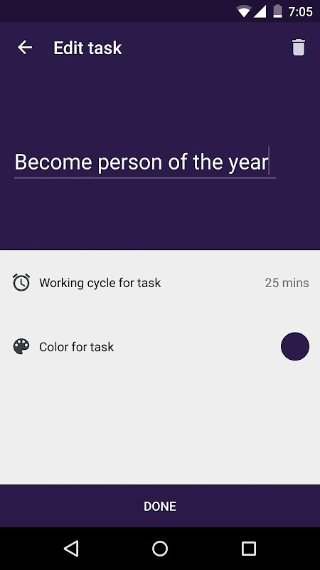應用程序使用一個計時器工作分解成間隔(默認為長25分鐘),通過短暫的休息分開。這有助於提高注意力,防止疲勞。應用程序還為您提供了可能性,組織你的工作計劃和管理任務。