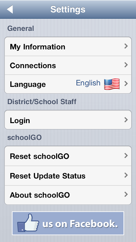 If your school's teacher is not using schoolGO and you would like to see what schoolGO looks like, tap the "Open Sample District" button at startup. Please contact us for information about using schoolGO at your school!
