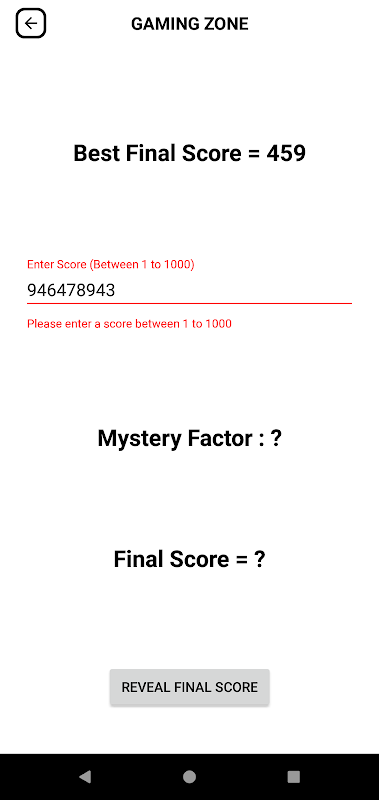 一個很酷的簡單數字遊戲,您可以在其中輸入您認為應得的分數。可是等等!有一個轉折,這個分數乘以一個隨機的神秘數字。所以你的最終分數就是你輸入的分數乘以這個神秘數字,從而成為最終分數的一個因素。