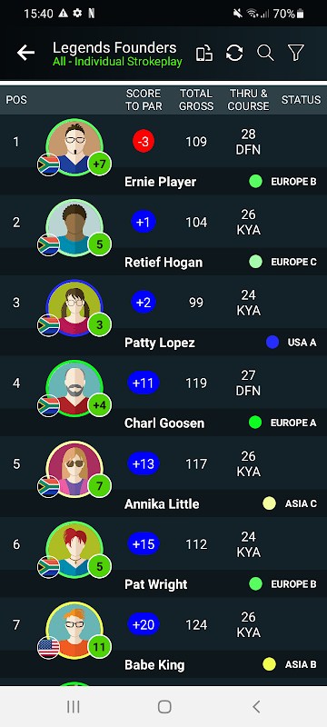 *多輪比賽和高爾夫之旅可供訂閱社團使用,無限過濾排行榜,包括複雜的團隊排行榜
