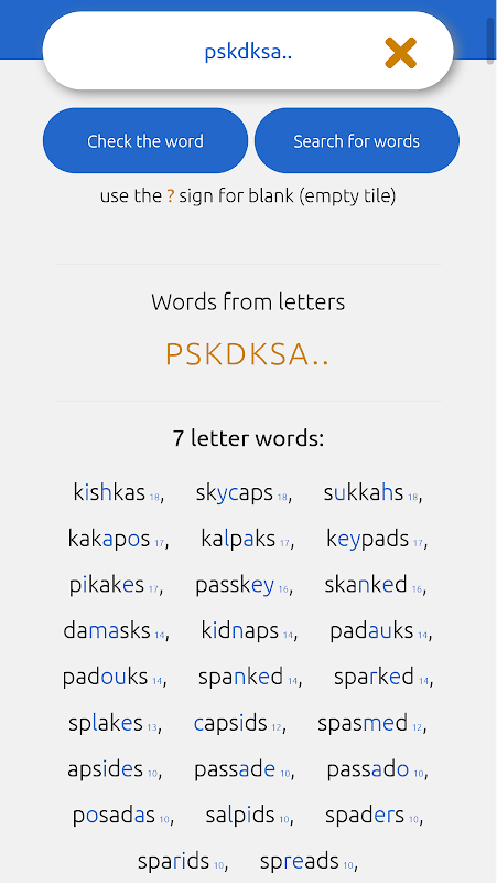 The dictionary contains 178,691 words that will allow you to win every game. We use TWL06 official dictionary. Our dictionary is a SCRABBLE and WORD WITH FRIENDS database that allows you to search for words from letters you have picked and check their meaning. It is also an anagram generator - a tool that allows you to create anagrams for Scrabble.