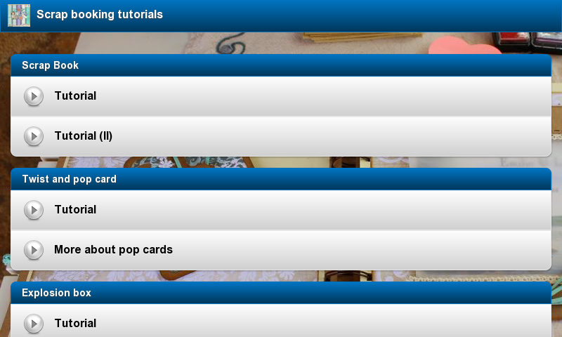 Scrapbooking tutorial is the perfect application to get started in the fascinating world of scrapbooks. With Scrapbooking tutorial and your patience you will be able to get the most detailed designs for your scrapbooks, with the only limitation of your imagination.